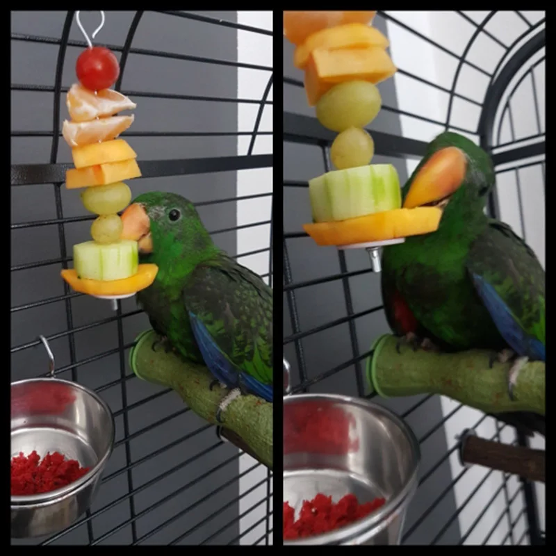 2024 New High Quality Pet Parrots Birds Food Holder Support Stainless Steel Fruit Spear Stick Meat Fruit Vegetable Skewer