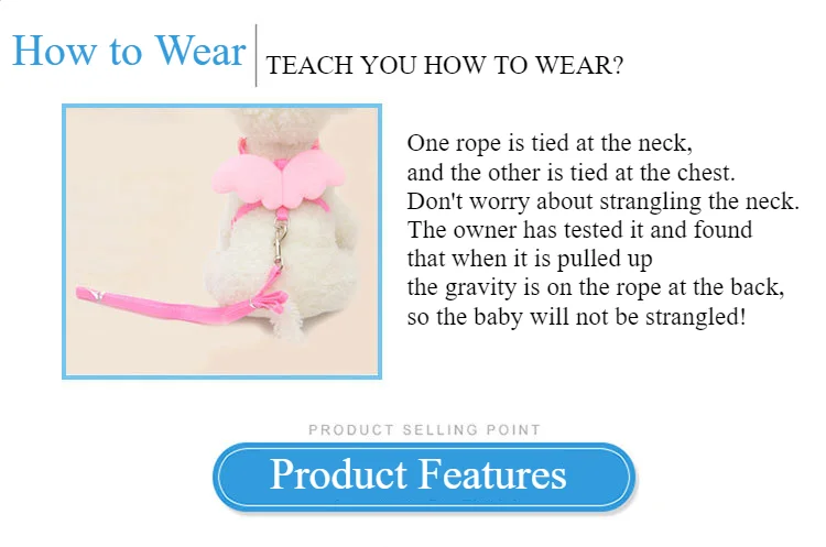 Pet Traction Rope Angel Wings Rabbit Walking Rope Cat Traction Belt Retractable Adjustable Length Chest Harness