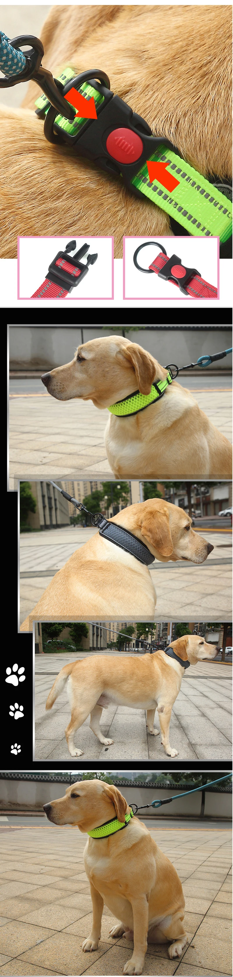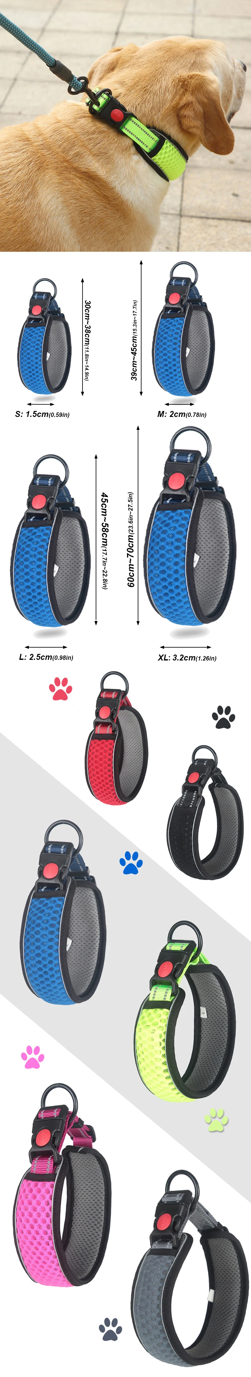 Reflective Dog Collar Pet Collar Pet Traction Rope Suitable Soft Neoprene Padded Breathable Nylon Pet Collar Adjustable